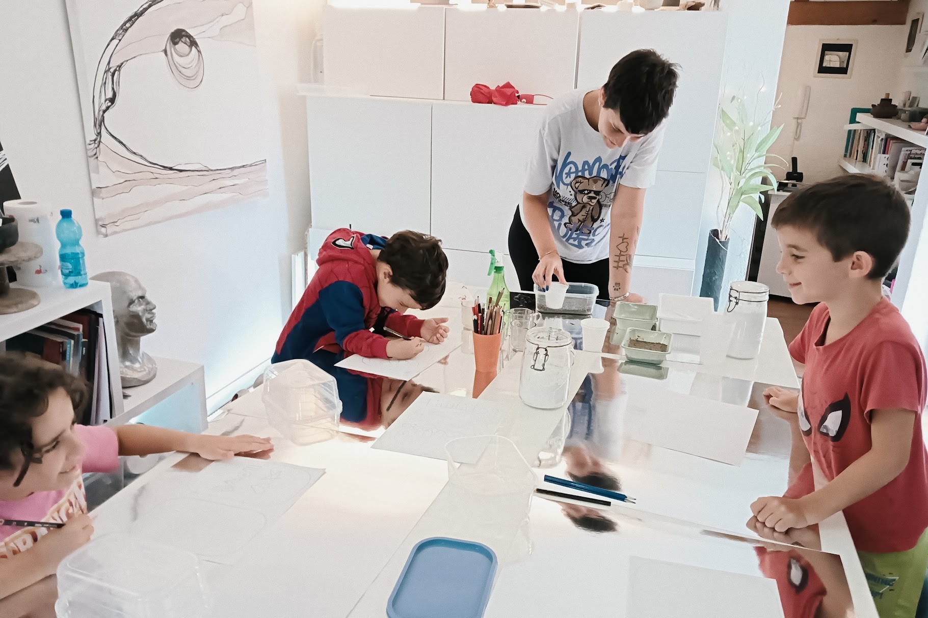 Sperimentiamo tempera, acquerello, chine, stampa, pittura su tessuto, tela, carta e realizziamo piccole sculture a partire dai nostri, trasformando le nostre idee e dando alla creatività la forma di oggetto d’uso capaci di trasmettere agli altri le nostre emozioni.